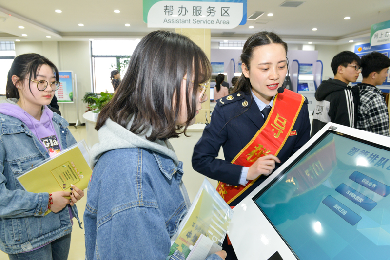 税宣小使者在开封市顺河回族区税务局办税服务厅工作人员引导下体验“六税两费“优惠业务办理
