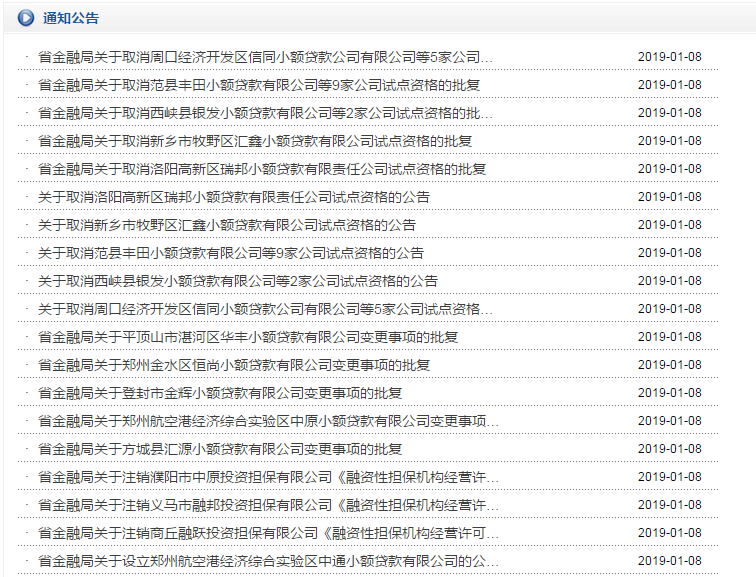 河南省金融局一日取消18家小贷公司试点资格 注销3家投资担保公司