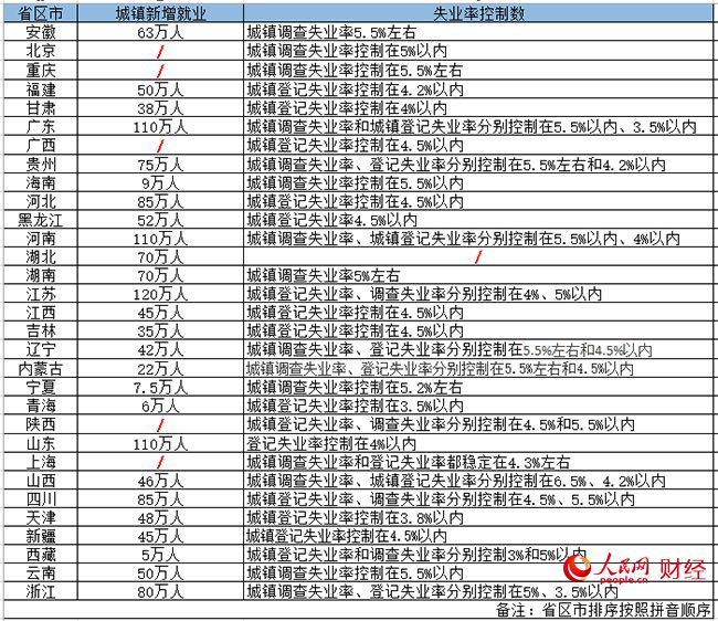 各省区市政府工作报告公布2019年新增就业目标及失业率控制数