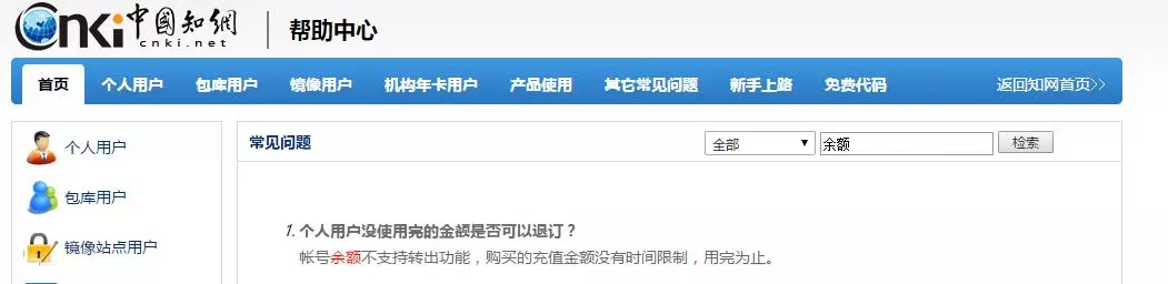 知网对于余额退订的解释
