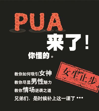 PUA(Pick Up Artist),原意“搭讪艺术家”,后泛指会吸引异性、让异性着迷的人及其相关行为。部分不法人员以传授PUA教程为名,在网上大肆传播淫秽色情信息,或从事诈骗、敲诈勒索等违法犯罪活动,严重危害社会公共安全,侵害群众尤其是女性网民合法权益。