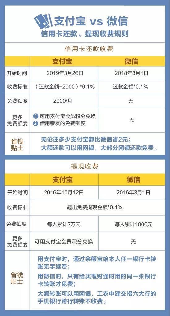 2016年,针对提现服务,微信、支付宝先后宣布各自收费规则。这次,信用卡还款收费规则也是相继出台,再次引发关于互联网服务是否已经进入收费时代的讨论。