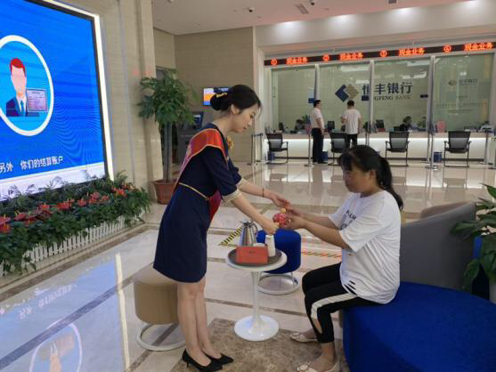 天气炎热,洛阳分行营业部在营业厅堂为前来办理业务的客户送上清凉解暑的绿豆水,贴心的服务得到了客户的高度赞许。