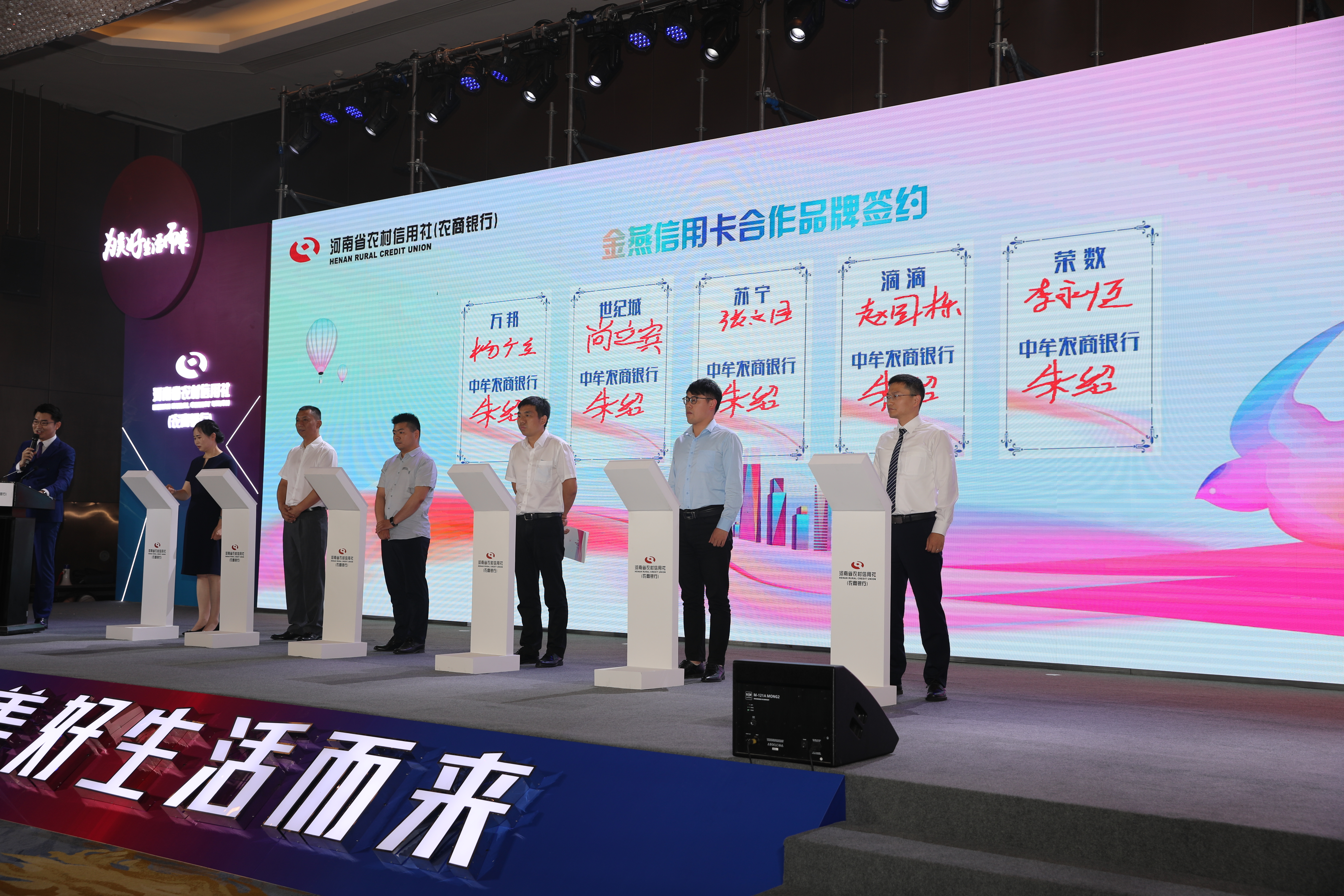 发布会上,金燕信用卡首家发卡行——中牟农商银行与万邦、世纪城、苏宁、滴滴、银数等金燕信用卡特约商户进行了现场签约。会上,河南省农村信用社还对金燕e系列产品进行了隆重推介。