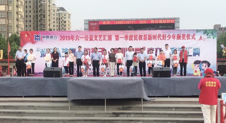 5月31日,2019年六一公益文艺汇演“暨第一季度民权县新时代好少年颁奖仪式”在民权东区民生广场隆重举行,中原银行民权支行作为承办方积极参加活动。