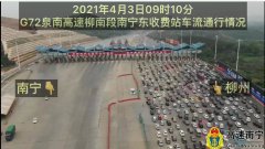 4月3日是清明假期的第一天,当天早上,南宁部分收费站迎来较大的车流,不少人出城就被堵在了路上。截至当天上午10时,南宁东收费站出城方向,已经开始进行间断性临时交通管制。