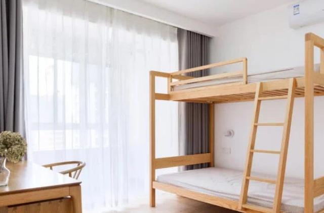 儿童房的配色和主卧室基本上相同,儿童房的床是选择了高低床的款式,方便屋主陪伴孩子一起睡觉。