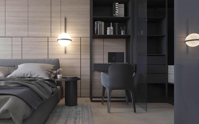 主卧是衣柜采用步入式设计,深灰色的衣柜,增添几分高级感!