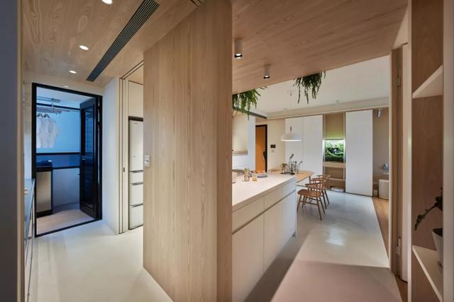 木质感的隐形推拉门,把中厨区域独立隔开,提供了一个中餐烹饪的空间。
