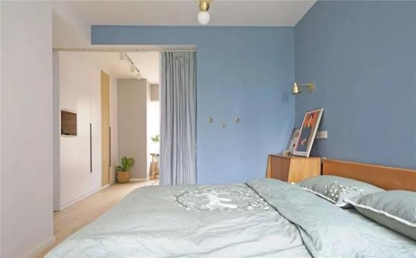 现在年轻人装修房子很少会像上一辈一样,追求华丽贵气的装修,而是喜欢简单、舒适、放松的居家氛围。这个房子就是这样的设计,白蓝色的墙面加上白色、粉色和实木色的家具,非常的清新干净。