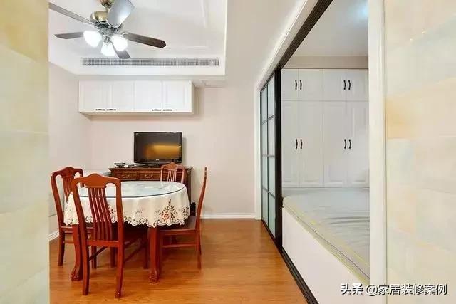 餐厅摆放的电视柜带有收纳功能,也能放些小件物品,以后寻找起来也容易,同时又能让餐厅保持干净整洁。
