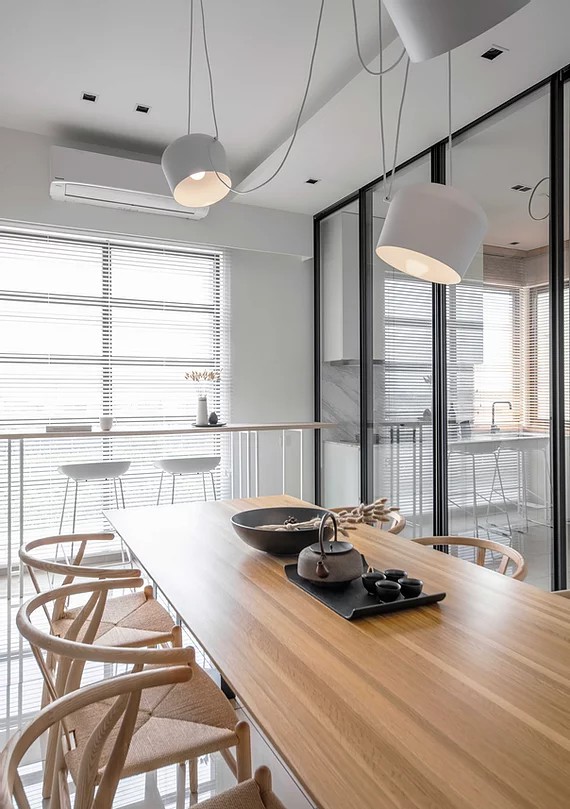 有温润质朴质感的还有木质护墙板。在窗帘材质的选择上,除了咱们常用的棉质窗帘,竹帘、麻帘、百叶窗自然质朴,也是好选择。