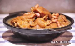 花生煲猪手 用料: 猪蹄 400g、带皮花生 100g、红腐乳 1瓶、大葱 30g、姜 10g、八角 2个、桂皮 3g、草果 2个、香叶 1片、豆蔻 5个、干葱 20g、蚝油 10g、糖 3g、盐 2g、胡椒粉 2g、老抽 10g 做法