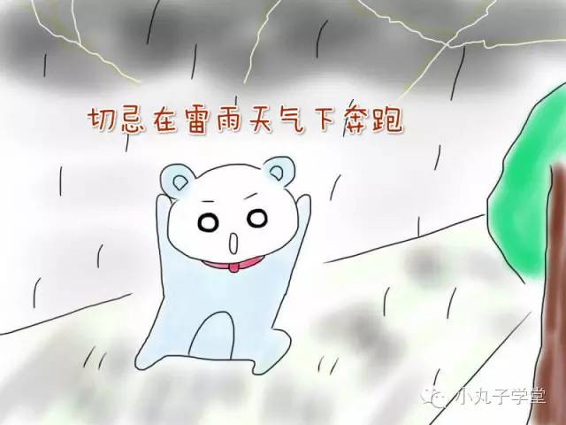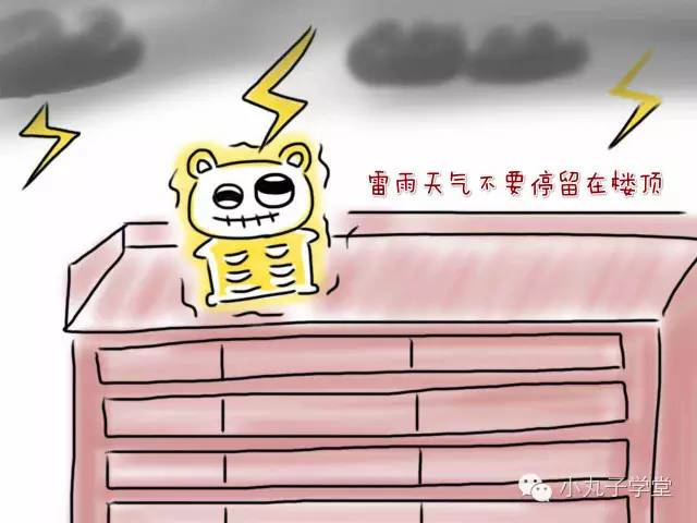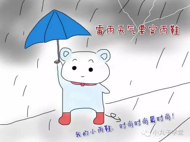 由此可见,雷电天气的安全问题非常值得家长们好好重视,尤其暑假到了,每年这个时期,都是孩子安全事故的高发期。孩子们独自在家或者跟同学们外出玩耍的时间多了,特别碰上7、8月的雷雨天气,家长对孩子们的安全教育必须重视起来。下面是小丸子姐姐为大家手绘的熊宝宝安全教育系列之防雷雨天的安全小漫画: