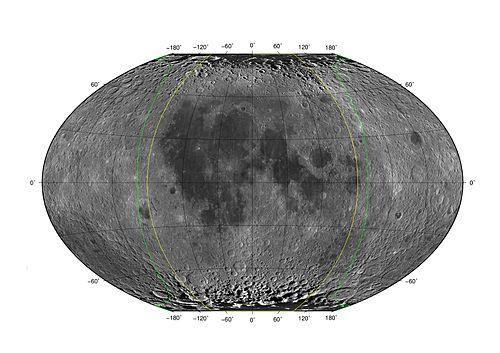- 纬度天平动,这是由于月球自转轴对于公转平面有稍微的倾斜造成的,类似于地球绕太阳公转产生四季变化的原理,结果就是月球上下之间的摆动。