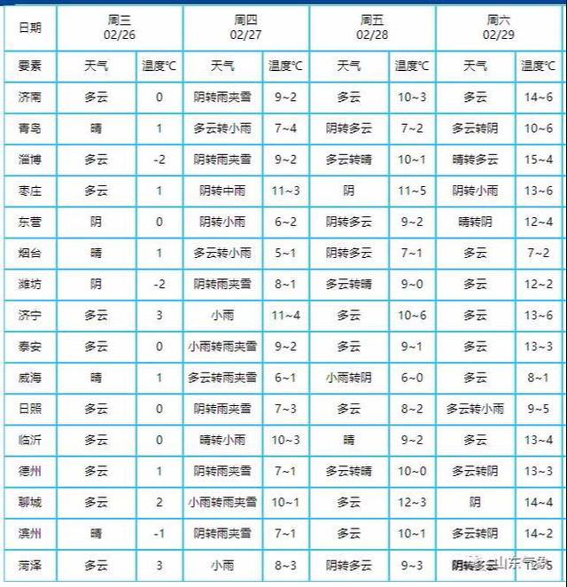 27日夜间到28日白天,鲁南地区天气阴有小到中雨转多云,其他地区天气阴有小雨雪转多云。南风3~4级。
