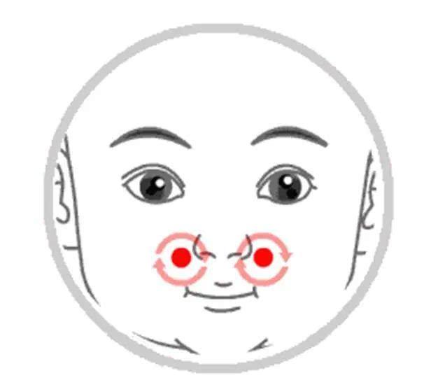 揉迎香:鼻翼外缘中点旁开,鼻唇沟中,用食指、中指按揉20-30次。具有宣肺气、通鼻窍的作用。治疗感冒或鼻炎引起的鼻塞流涕、呼吸不畅。
