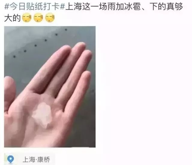 一般常见于春夏季节,所以昨天的魔都,除了天空突然暴雨,甚至在某些局部地区还落下了大冰雹!!!