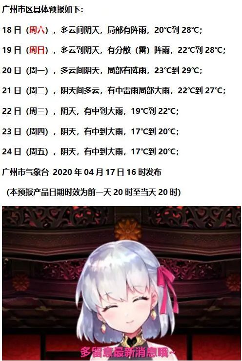 本周六天气还算可以,要晾晒的小伙伴们要多留意天空状况,提防局地阵雨的袭击;周日起到下周,雨水逐渐活跃,放眼下周中后期,还有一股冷空气也安排上了,大家要多留意天气君最新消息啦!