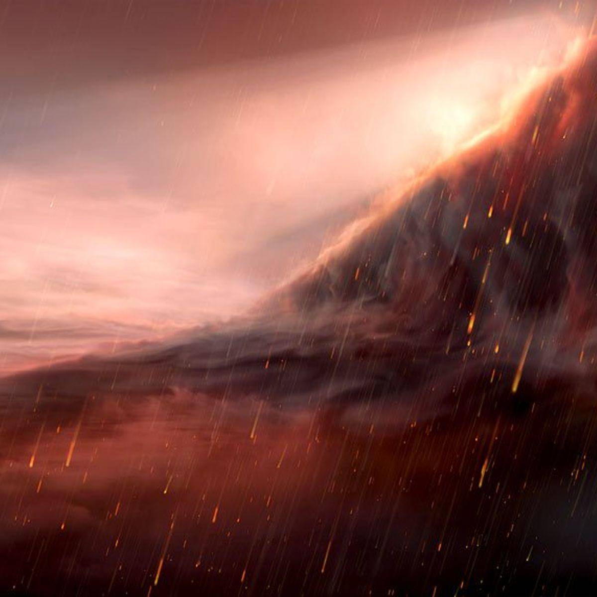 艺术插图:气态巨行星的大气中,铁雨伴着暮色倾泻而下。(图片来源:ESO/M.Kornmesser)