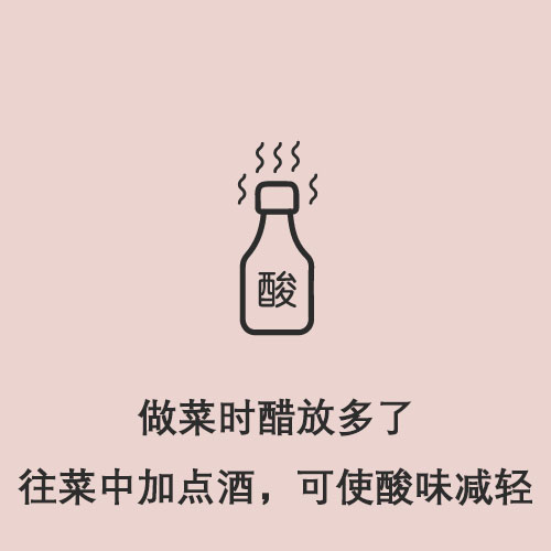做菜时醋放多了,往菜中加点酒,可使酸味减轻