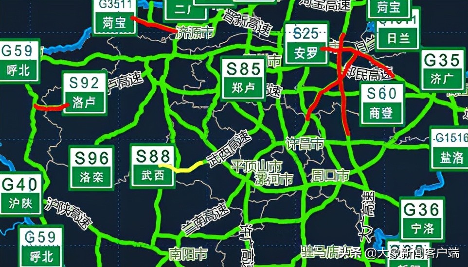 2、因路面通行条件受限,商登高速与安罗高速互通处以东至尉氏北站(主线)禁止9座以上客车、货车通行。