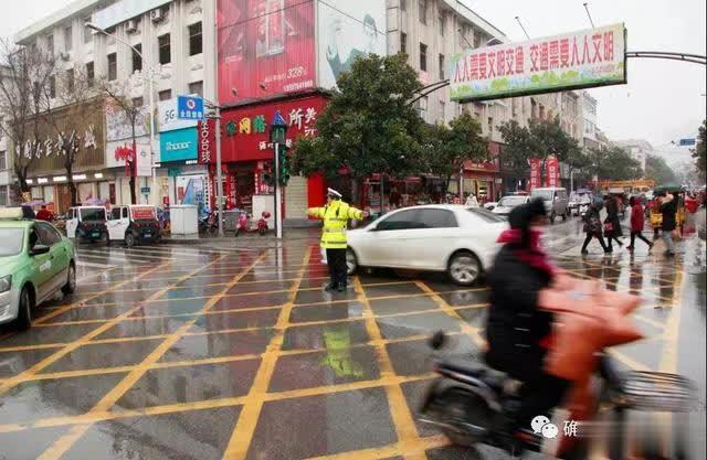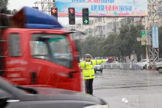大雪中,辖区各外勤中队民警、辅警坚守岗位,认真负责,在寒风中指挥过往车辆减速慢行、安全通过,全力确保城区道路交通安全畅通。