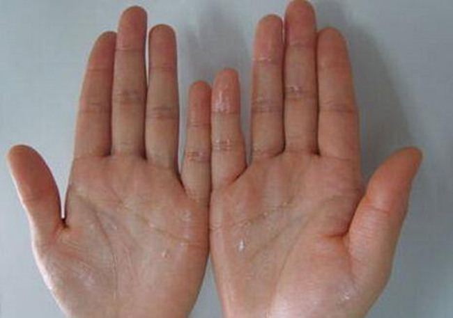 汗疱症一般在春夏交替之季开始发病,当到了夏中时,病情会加重,但是到了冬季后,就会自愈。它的主要症状为手部皮肤会出现密集的米粒大小水泡,略高于皮肤表面,多见于手掌心、手指侧面以及指端,严重的话还可能延伸到手背,同时还会伴随瘙痒、疼痛以及灼热感。汗疱症疱液清澈明亮,当干涸后就会开始脱皮,每年春夏交替之际都会发作。