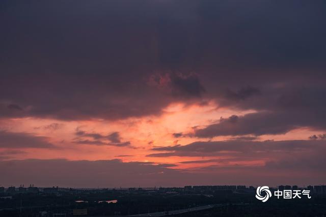 近期,安徽芜湖连续多日“浸泡”在雨中,昨天(29日)傍晚,降水暂歇,天空放晴,阳光在云层的间隙中光芒万丈,映红了天边的云彩。