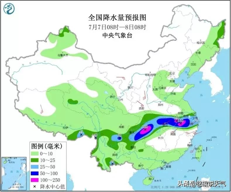 今明两天我省仍多雷阵雨天气,雨量分布不均,部分地区伴有短时强降水和7~9级雷雨大风。7日,大部地区天气多云,降水预报如下: