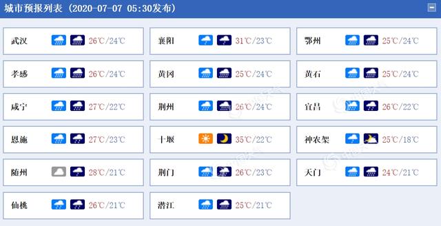 湖北各城市天气预报。