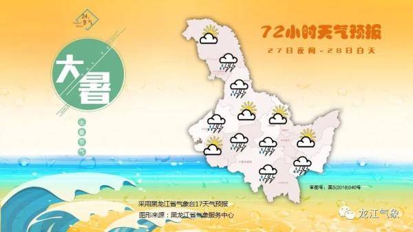 26日夜间到27日白天:大兴安岭、黑河北部多云有阵雨或雷阵雨,其中大兴安岭北部局地可达中雨,牡丹江多云,其它地区晴有时多云。