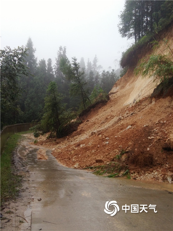 图为8月20日梁河县九保横路村道路塌方。(文/梁河县气象局 图/梁河县政府办)