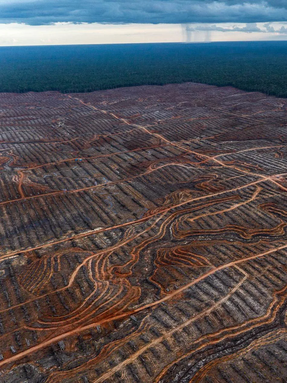 加里曼丹岛和苏门答腊的森林、泥炭地已被大片砍伐焚烧,给棕榈种植园腾位置。