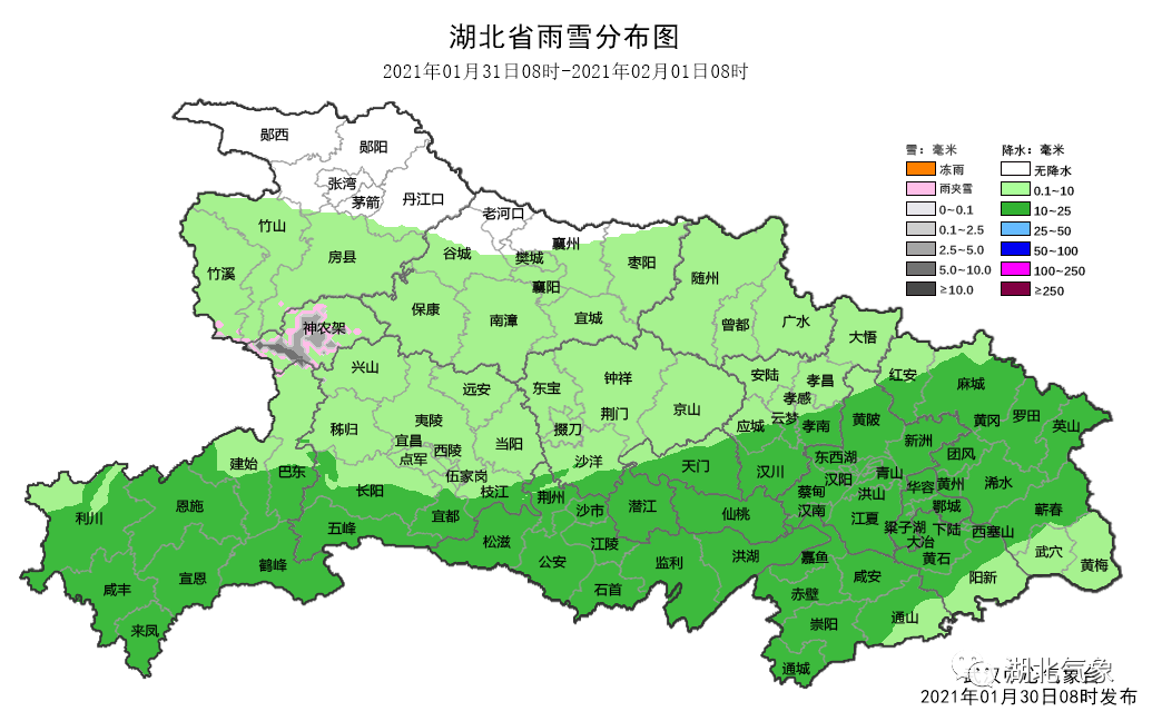 鄂西北的高海拔地区还会有雨夹雪或雪