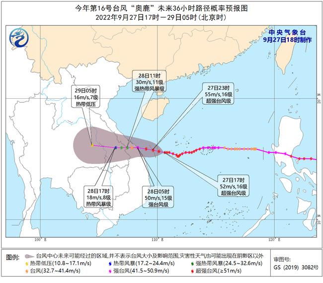 预计,“奥鹿”将以每小时20公里左右的速度向偏西方向移动,强度变化不大,将于28日早晨在越南中部沿海登陆(50-55米/秒,15-16级,强台风级或超强台风级),登陆后迅速减弱。