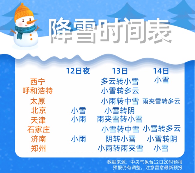 这些大城市都有可能看到雪,看看会在哪天落下↓↓